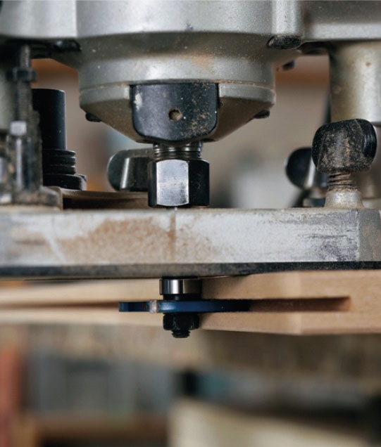 Lågerne glider i sporede lister, som vi laver i strimler af mdf-plade.