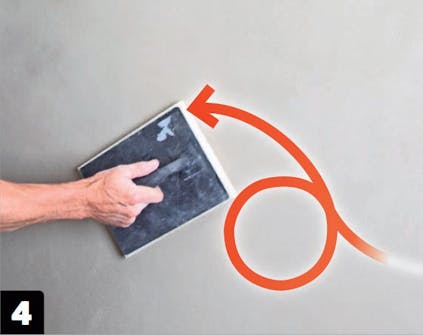 Træk andet lag puds på så jævnt som muligt. Mørtlen her skal være lidt tykkere og trækkes bedst på med et stålbræt nedefra og op.