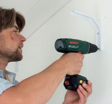 Du kan skrue køreskinnerne fast, men en kraftig dobbeltklæbende skumtape er rigeligt stærk, og så slipper du for at bore huller i gulvet. Det er navnlig smart, hvis du har gulvvarme.