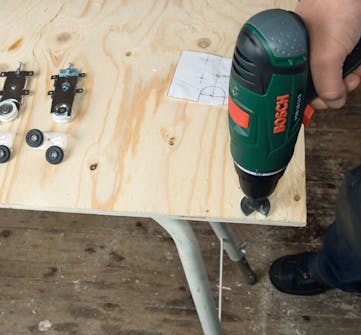 Slib udskæringerne med slibepapir, så der ikke er splinter, som kan genere rullernes løb. Monter toprullerne efter borelærens anvisninger (ikke vist på billedet).