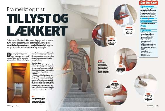 En lysstærk, flad og stilren LED-lampe erstatter den gamle, traditionelle plastkuppel med glødepære. Lampen passer perfekt til det nye look, og den giver et godt grundlys i hele trapperummet.