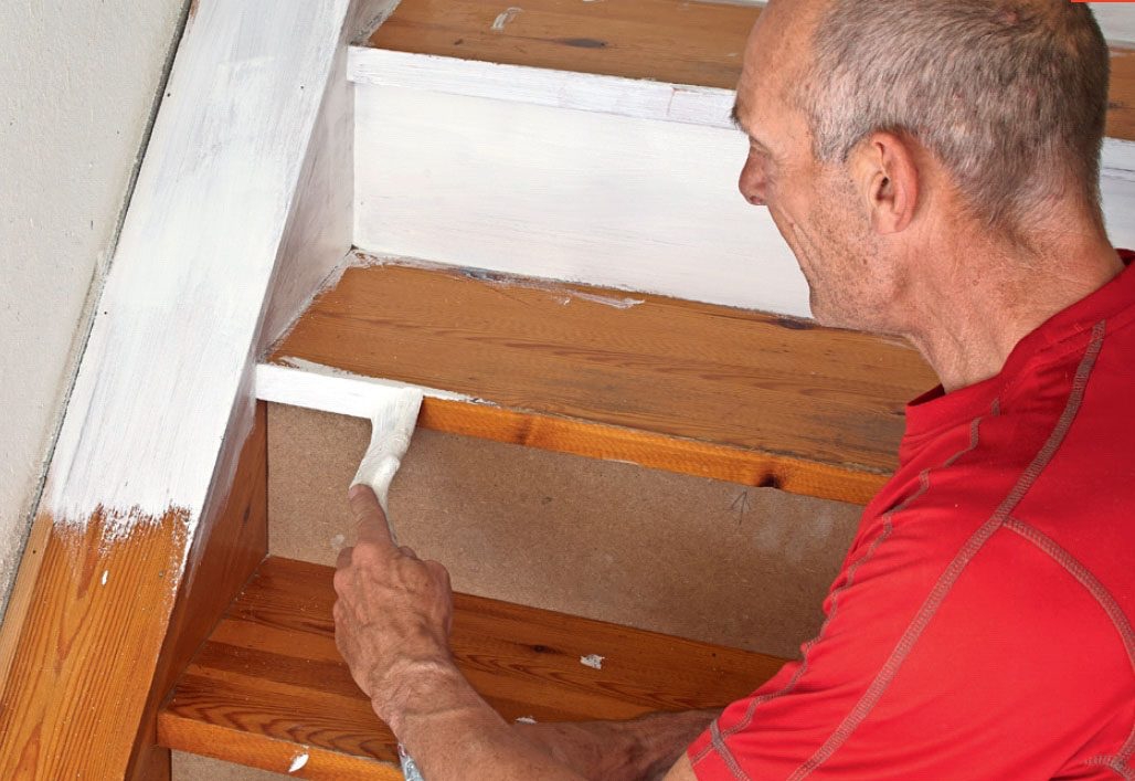 Giv vanger og stødtrin en gang hæftegrunder af samme mærke som slutmalingen. Hvis du vil male den vandrette del af trinnet, skal det også have grunder.