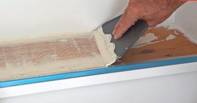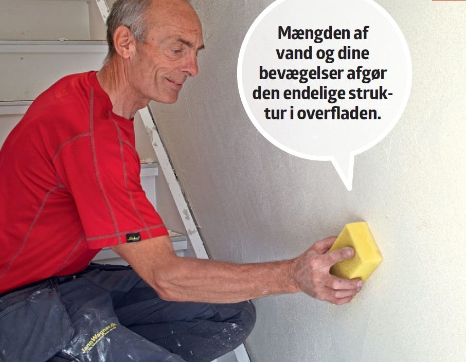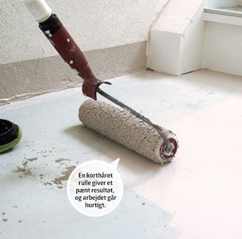 Glat med en bred spartel efter nogle minutter (afhængigt af hvor meget underlaget suger). Målet er at opnå en ensartet, jævn overflade.