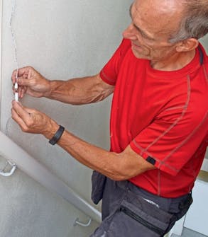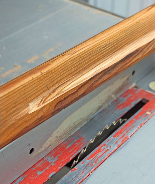 Vi sætter et lysbånd bag gelænderet og udnytter en af LED-lysets mange nye muligheder. Lysbåndet fylder meget, meget lidt og kan klippes til på mål. Med bord rundsaven og et smalt stemmejern laves en not i gelænderet, som passer til det lysbånd, vi har købt, så det er helt skjult. Noten kan også laves med en overfræser.