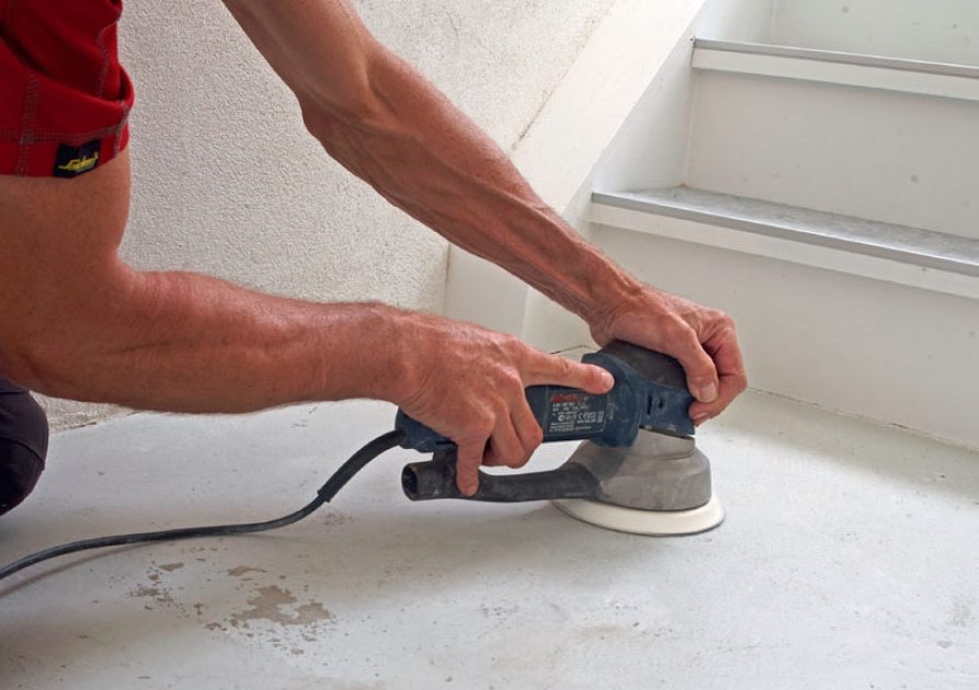 Skrab og slib al løs maling af gulvet. Sørg også for at slibe overgange i malingen ned, så du ikke kan mærke dem med fingrene.