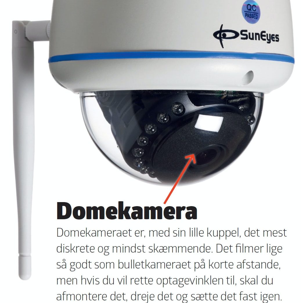 Har du brug for et kamera med en lang række vidde, fx fordi det skal filme ned ad en lang indkørsel, er bulletkameraet bedst. Det er også det nemmeste at installere, fordi du nemt kan rette vinklen ind, så du overvåger det, du vil overvåge. Kameraet er til gengæld let at øve hærværk imod.