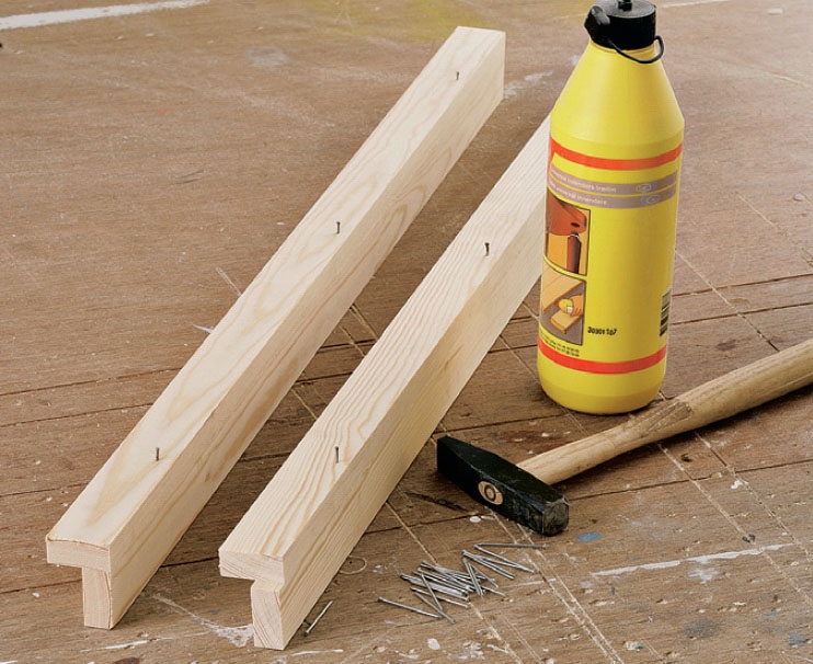 Start med at samle listerne i vinkel. Listerne samler du med snedkerlim (pva) og stifter, der dykkes.