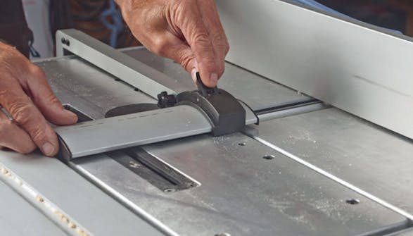 Savklingens højde justeres let ved at løsne håndtaget, vippe savklingen til den ønskede højde over bordet og spænde håndtaget igen.