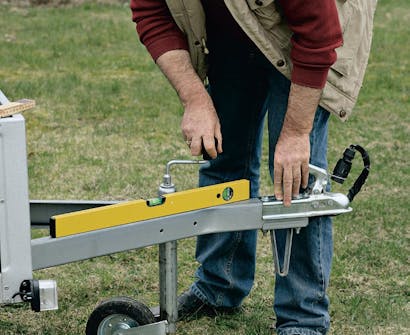 Stil traileren på en plan grund, og mål op til støttebenene. Sørg for, at den er i vater ved at justere næsehjulet. Mål så den totale højde over jordplan og højden på trailerens sider. Tjek, om der er beslag e.l., som kan være i vejen for benene.