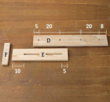 • 2 brædder til støtteben (E) a 50 cm