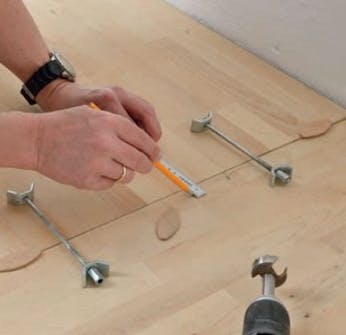 Samlingen skal styrkes med både beslag og såkaldte fisk. Mærk op, hvor de skal placeres - to bordbeslag og tre fisk.