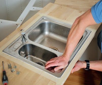 Sav ud til vasken. Du får det pæneste snit med en dyksav. En stiksav langs en retskinne kan også bruges - under alle omstændigheder skal du bruge en stiksav til hjørnerne.