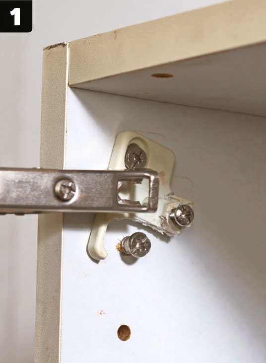 Hyldens vægt har med tiden ødelagt hyldebæreren. Nu sidder hylden løst eller er måske allerede faldet ned i bunden af skabet. Løsningen er at fylde hullet op med woodfiller (træspartelmasse) og etablere en helt ny hyldebærer, du kan købe i ethvert byggemarked.