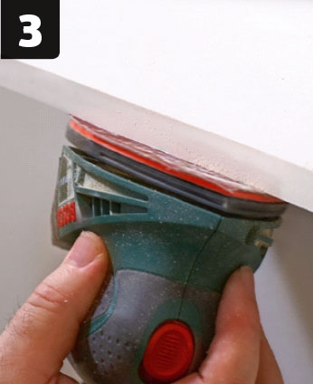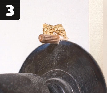 Skær dyvelen af i plan med skabssiden, og fyld efter med woodfiller. Lad spartelmassen hærde, og slib med fint slibepapir.