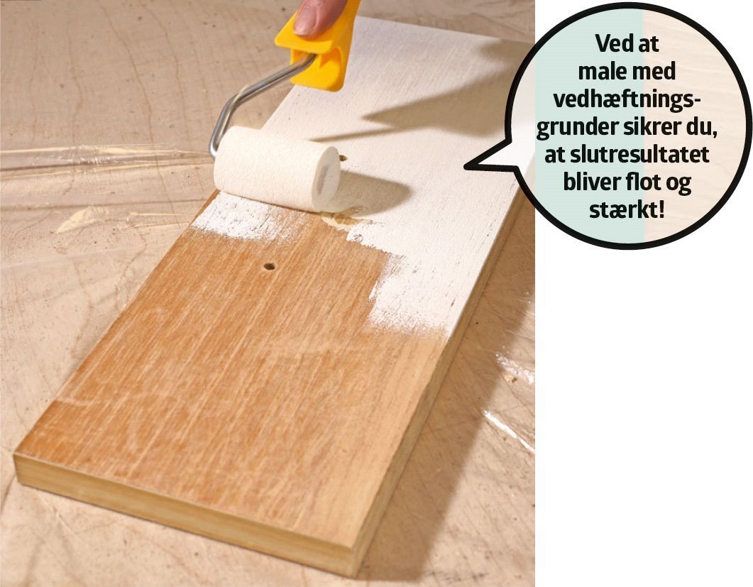 Affedt overfladen med grundrens, og spartel ridser og skrammer ud. Slib mat med slibepapir korn 180.
