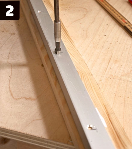 Sav aluvinkelprofilet ud i den længde, du skal bruge, og bor tre til fire huller på 4 mm i den ene side. Undersænk hullerne til skruehovederne.