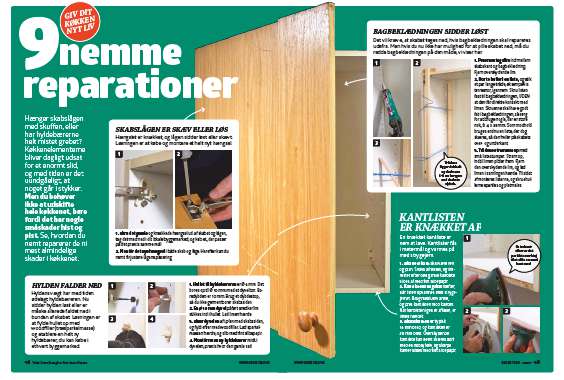 Det vil kræve, at skabet tages ned, hvis bagbeklædningen skal repareres udefra. Men hvis du nu ikke har mulighed for at pille skabet ned, må du redde bagbeklædningen på den måde, vi viser her.