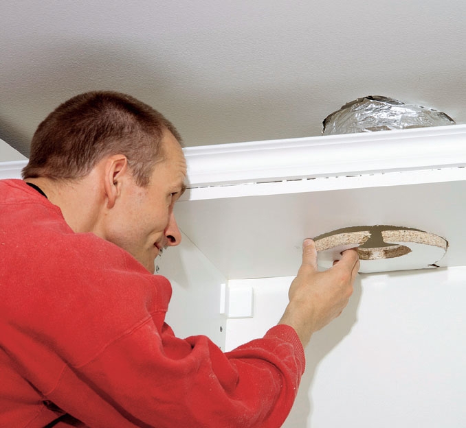 Monter en liste i hver side indvendigt i overskabet. Listerne skal bære emfanget, der skrues fast nedefra.