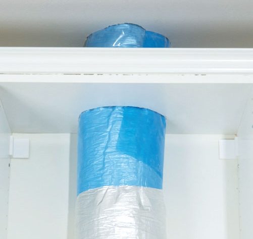 Start med at lave et hul, som passer til den nye flexslange/røret, i loftet. Lav også hul i oversiden af overskabet.