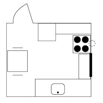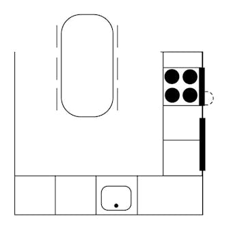 Når du skal bygge et køkken, er det klogt at lave skitser, der hjælper med at holde et godt overblik. Du bør fx have styr på, hvor vigtige installationer er, som vandtilslutning, elinstallationer og udluftning. Hvis du planlægger dit nye køkken – helt eller delvist – efter de gamle installationers placeringer, er der mange penge at spare. Kogepladen i det nye køkken har fx samme plads som i det gamle for at kunne bruge det hul, der allerede var i muren, til udluftning/emfang. Vasken har også samme placering.