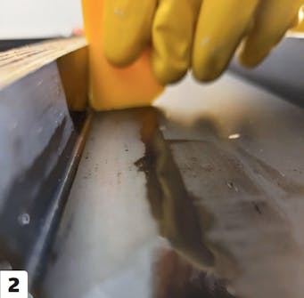 Langs forkanten af bundpladen skal barrieren laves i to stykker, så der opstår en rende langs forkanten. Spartelmassen i renden skjuler bundpladen, så den er helt usynlig.