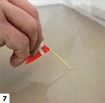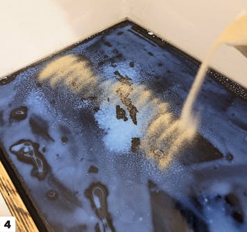 Du skal hælde spartelmassen i flere steder, så den fordeler sig selv let og effektivt. Husk også at hælde spartelmasse direkte ned i renden langs forkanten.