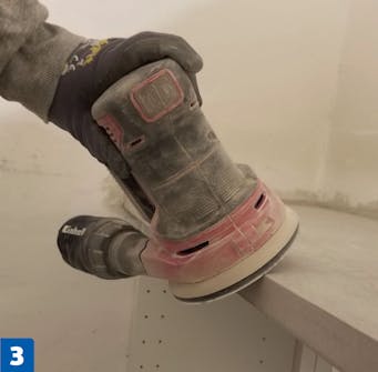 Husk at afrunde kanterne. Kør excentersliberen frem og tilbage langs kanten, indtil du kan føre en finger frem og tilbage på en behagelig afrundet kant.
