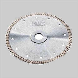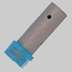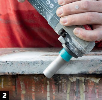 Montér en diamanthulsav, Ø 35 mm, på vinkelsliberen. Hvis du har lidt ekstra stenplade at øve dig på, så er det en god idé at teste, hvor meget sliberen vrider. Skru ned for omdrejningerne, før du saver.