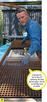 Bind 10 mm rundjern (armeringsjern) til armeringsnettet med ståltråd. Jernene skal sidde på begge bordpladens langsider for at give ekstra styrke langs kanten, ikke mindst på de smalle stykker langs vasken.