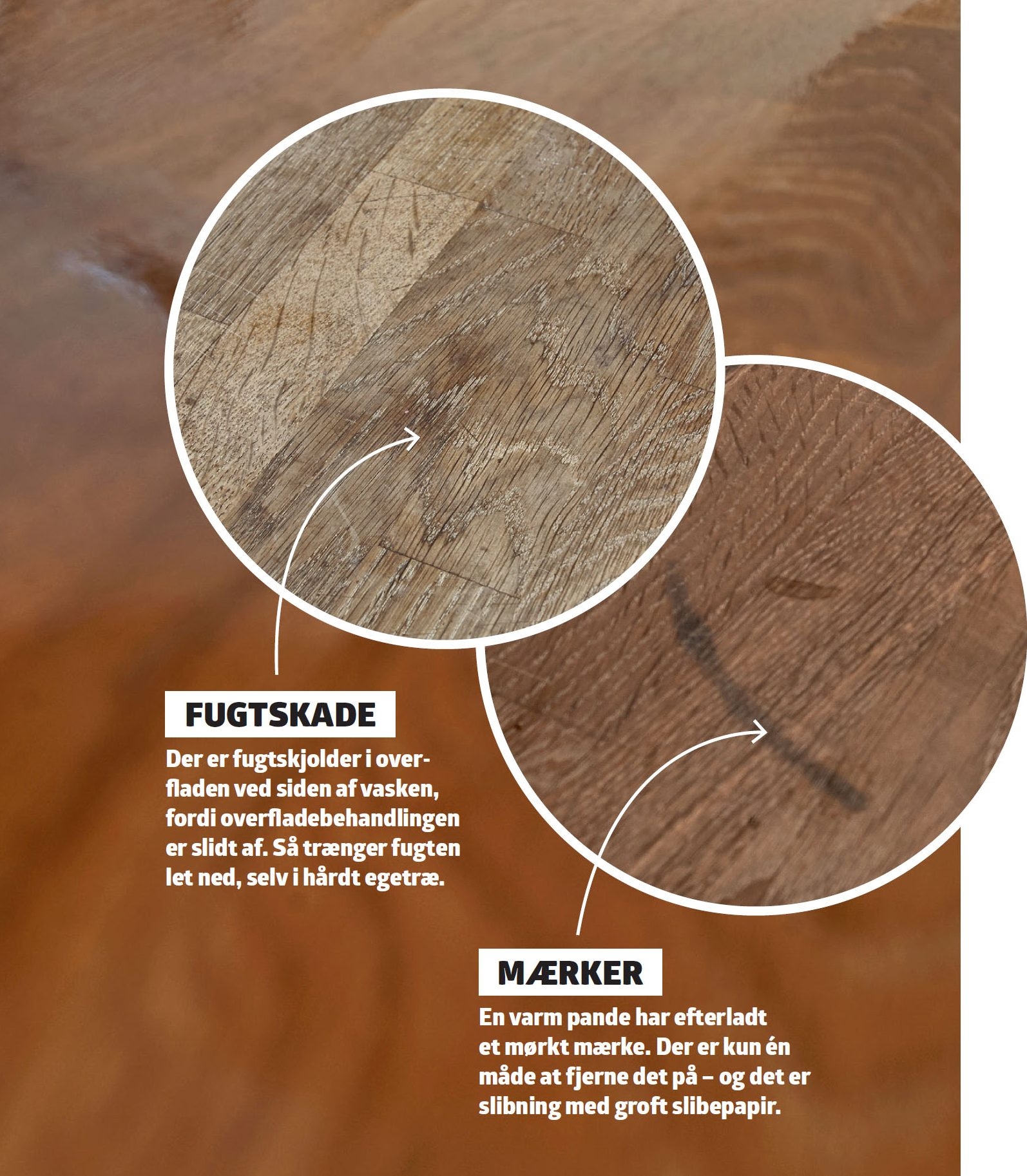 Inden du kan gå i gang med slibning og oliering, er det vigtigt, at bordpladen er gjort ordentligt rent. Al fedt og smuds skal flernes. Det gør du bedst med trærens, der blandes i lunkent vand.