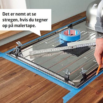 Til nogle vaske/kogeplader følger der en opmålings- og udskæringsplan med. Og hvis ikke, må du selv måle op. Her viser vi dig, hvordan du gør, når vasken skal ligge på en kant, og du saver hullet ud med en stiksav.