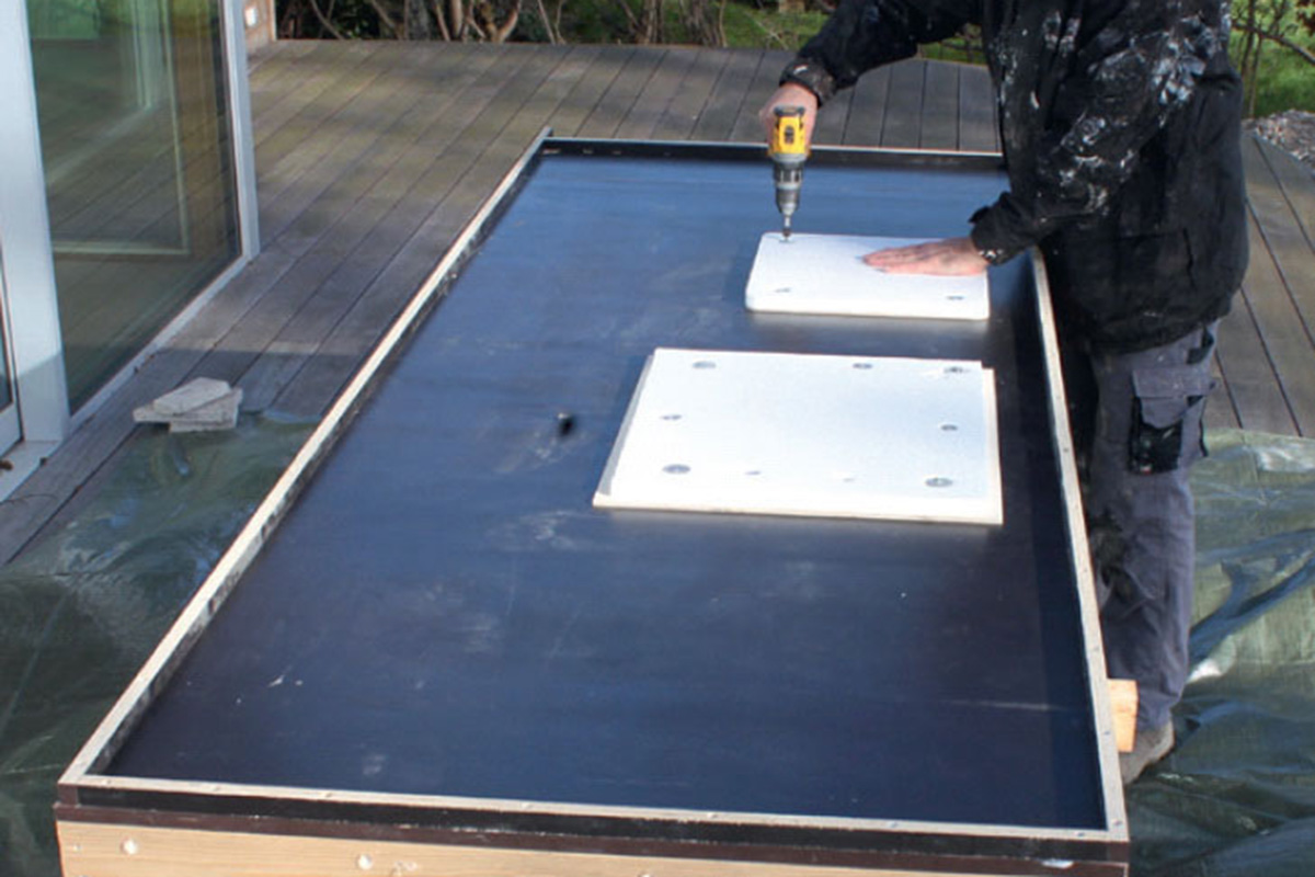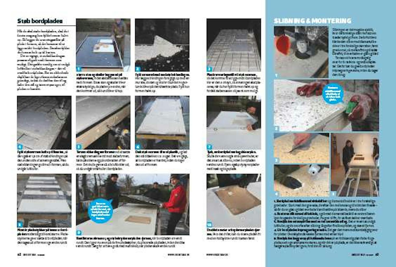 Hvis du skal have kogeplade, vask og vandhane i bordpladen, skal du sørge for, at der er huller til det. De laves ved at fastgøre polystyrenplader, så disse steder bliver friholdt for terrazzoblandingen.