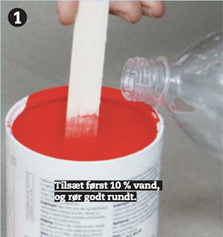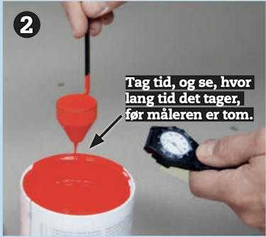 Derfor følger der en særlig viskositetsmåler med sprøjtepistolen (i hvert fald Wagner-modellerne), som du skal bruge, når du skal fortynde malingen. Som hovedregel skal du regne med at fortynde malingen 10-20 procent med vand for at få den rette viskositet, men følg fabrikantens anvisning.
