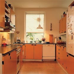 1972: Men vi ved, hvordan det nye Atlas-køkken afmasseproducerede elementer så ud: skriggule låger og skuffer, brune borde, kork på gulvet. Sådan som modebevidste danskere ville det i halvfjerdserne. Vi ved det, fordi vi fulgte og beskrev det næste generationsskifte her i bladet.