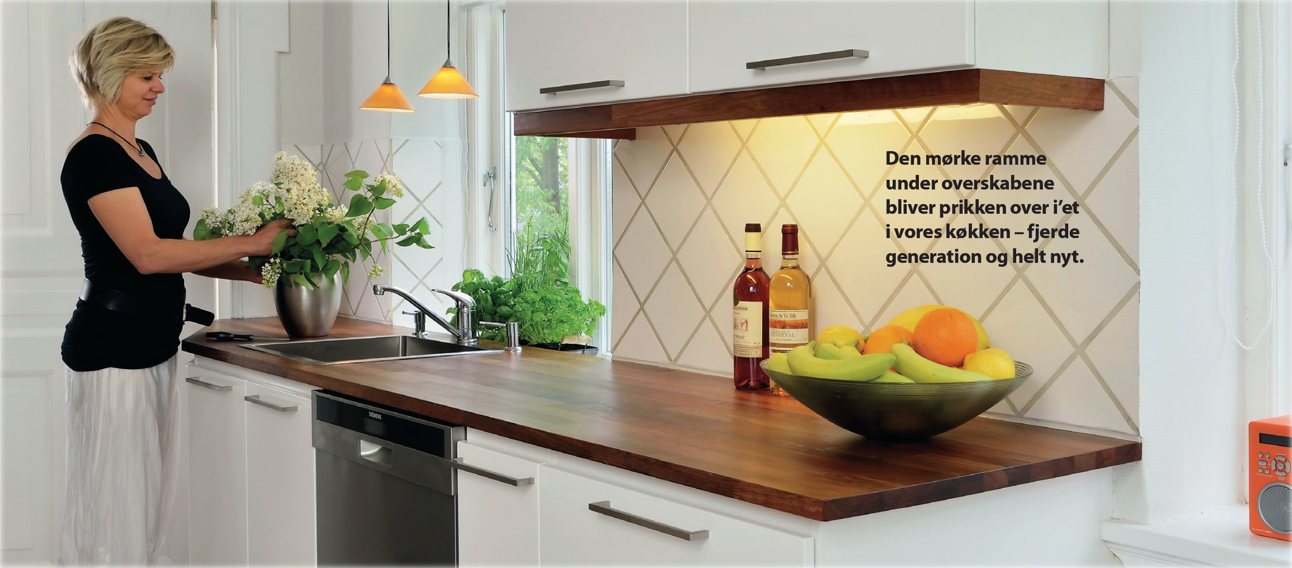 Derfor går vi nu over til armaturer fra Luminestra med 13 watt rør. Rørene giver lige så meget lys som de tidligere 2 x 20 watt under skabene, så vi opnår en markant strømbesparelse - i tidens ånd.