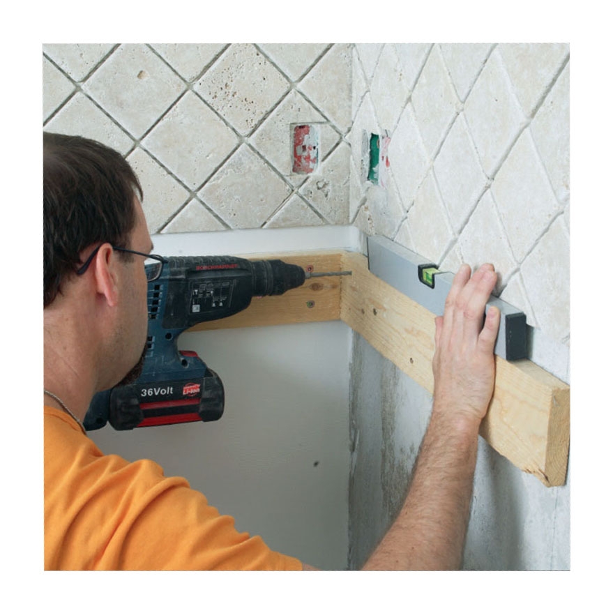 Når du monterer det første skab, så vær meget omhyggelig med at få det fuldstændig lodret og vandret på alle ledder, før du gør det fast til væggen. Det er det første skab, du bruger til at rette de næste skabe ind efter.