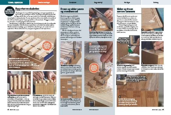 I skuffefronten er taphullerne, altså det træ, der skal stemmes væk, det mellem ska belonens listestykker. I skuffesiderne er taphullerne under skabelonens listestykker. Markér taphullerne tydeligt, og sav altid på den side af stregen, der vender ind mod taphullerne. På den måde sikrer du, at tappene vil gå stramt ind i taphullerne.