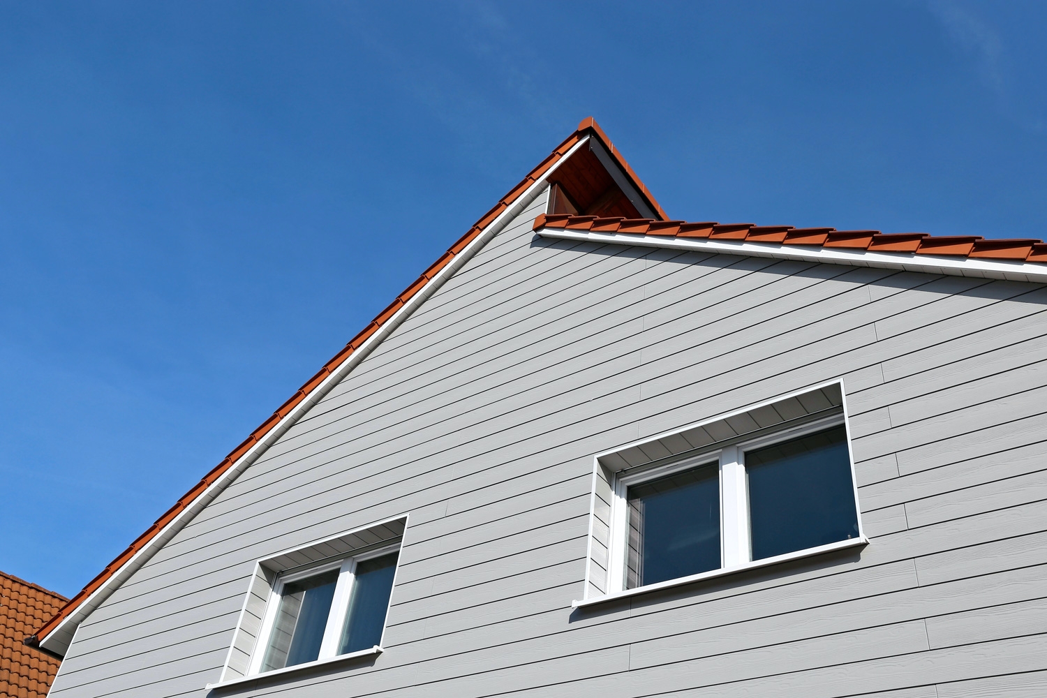 Et helt hus med en facade af fibercement kan godt virke ret bastant og industrielt, men hvis du vælger det til mindre områder på et træhus eller et murstenshus, giver det en god kontrast. Det kunne fx være som beklædning til en tilbygning, gavl eller kvist.
