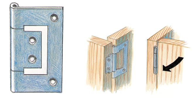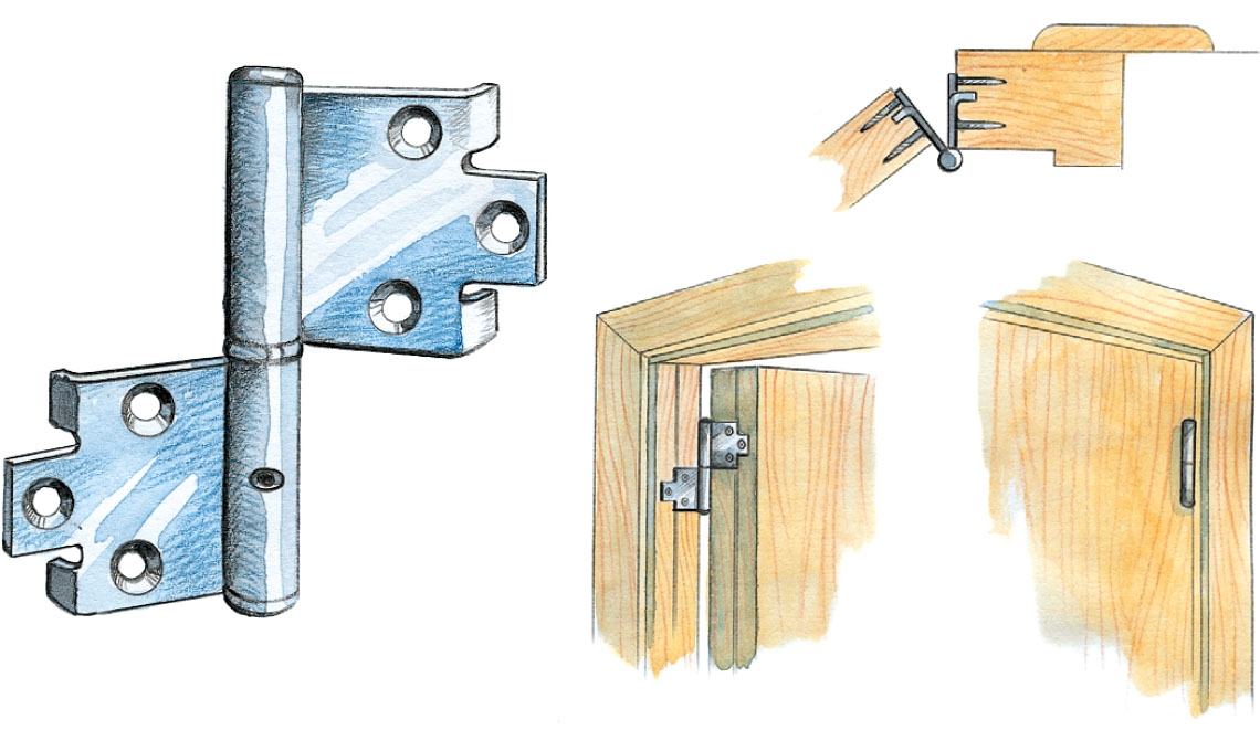 Næsten alle fabriksfremstillede yderdøre og vinduer er forsynet med disse hængsler, der monteres i en not (et spor) i ramme og dør/vindue. Også her er det klogt at tage det gamle hængsel med i byggemarkedet, når du skal købe et nyt.