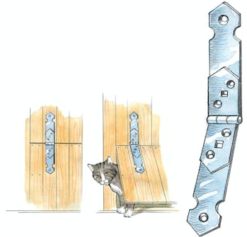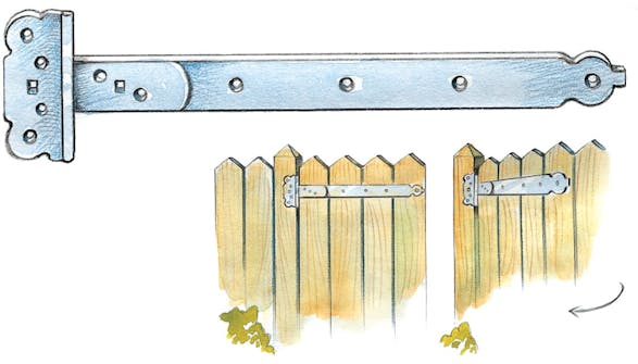 T-hængslet minder om stabel- og nothængslet. Men det er beregnet til lidt lettere udendørs konstruktioner. T-hængslet kan ikke skilles, så låge/lem/dør kan ikke løftes af.