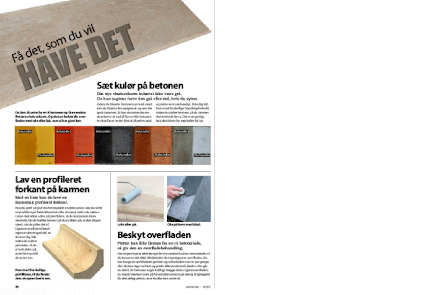 Har nogen lagt et æbleskrog eller en sandwich på en betonplade, vil du kunne se det altid. Medmindre du imprægnerer overfladen. Du kan bruge en spritbaseret gulvlak og rulle pladen over et par gange, eller du kan tage en klud og gnide silikoneolie ind i pladen. Der går en del til, da betonen suger kraftigt. Begge dele vil gøre overfladen en smule mørkere (som på farvestriben øverst på siden), til gengæld får den aldrig pletter, som du ikke kan vaske af.