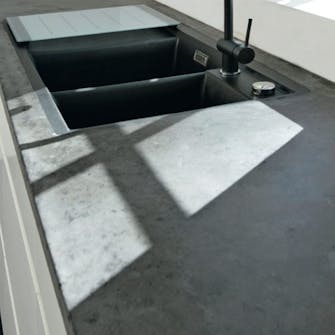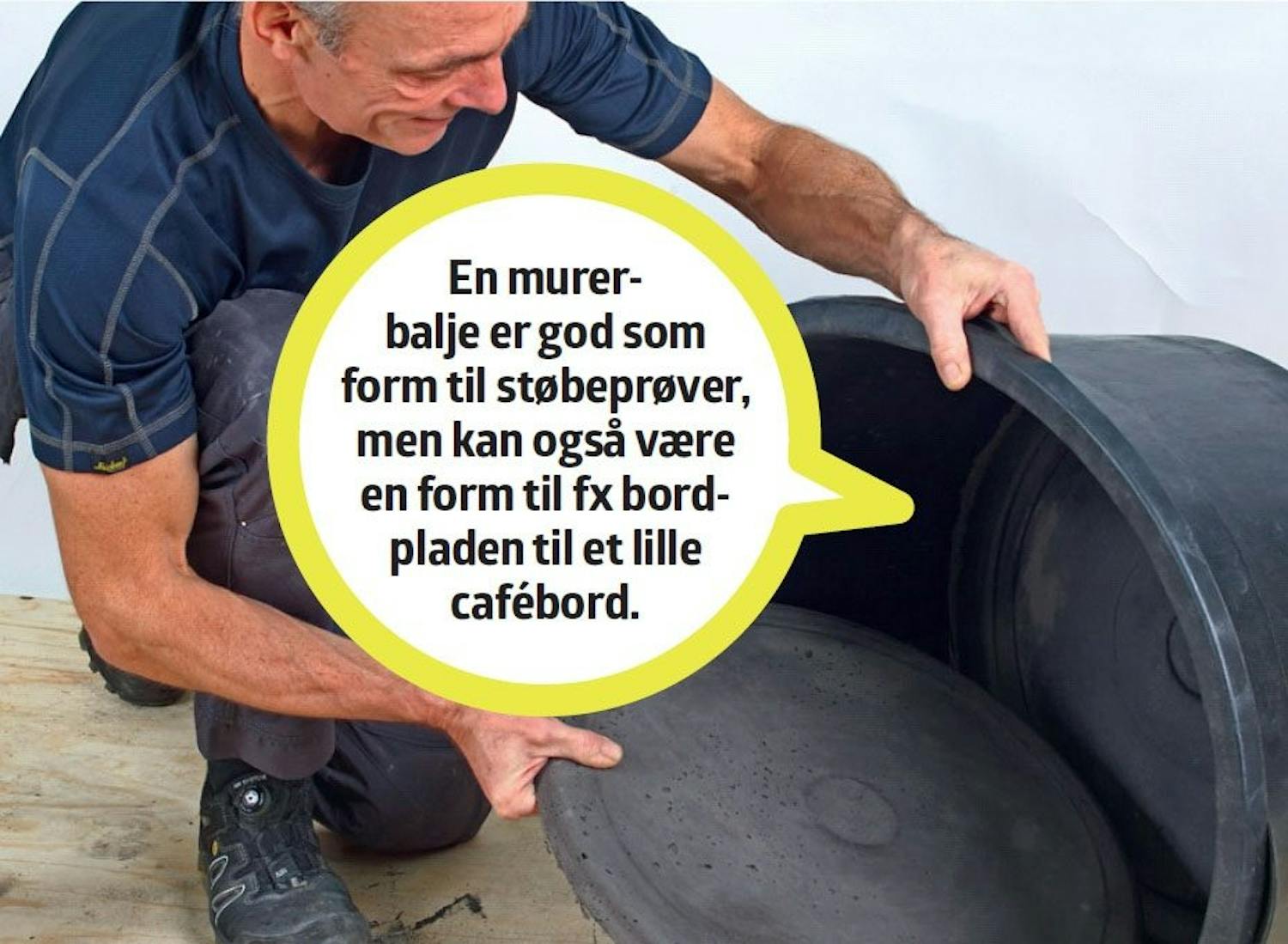 - BLAND SELV Bland i forholdet 1:2:3 (cement, sand, sten), hvis du armerer bordpladen med jern/støbenet. Hvis du armerer med fibre, skal du undlade stenene.