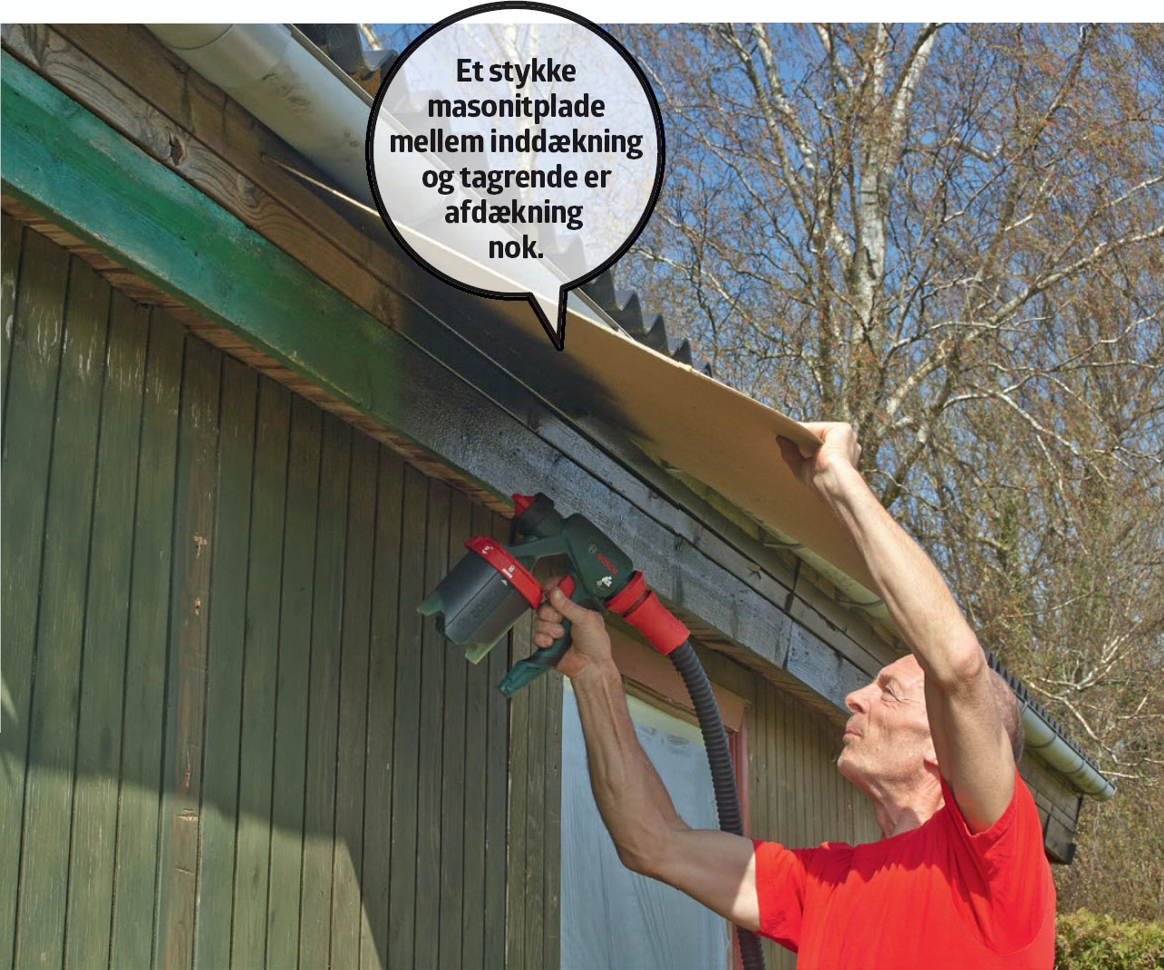 Når du sprøjtemaler facade, hegn og lign., kan du nøjes med at bruge en plade, der kan følge med, som arbejdet skrider frem, til at dække belægning eller plæne. Pladen er en god idé, både for at beskytte fx belægninger mod maling og for at sikre, at luften fra sprøjten ikke blæser sand, blade og andet skidt op i malingen.