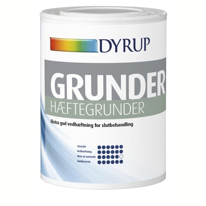 Når du bruger hæftegrunder, er det meget vigtigt, at underlaget er gjort helt rent, ellers er det svært at få til at binde – af samme grund er det en god idé at lave en prøve et diskret sted. Når hæftegrunderen er tør, presser du et stykke tape ned på den og rykker det af. Hvis grunderen slipper, må du igen matslibe og rengøre, før du maler grunder på en gang til.