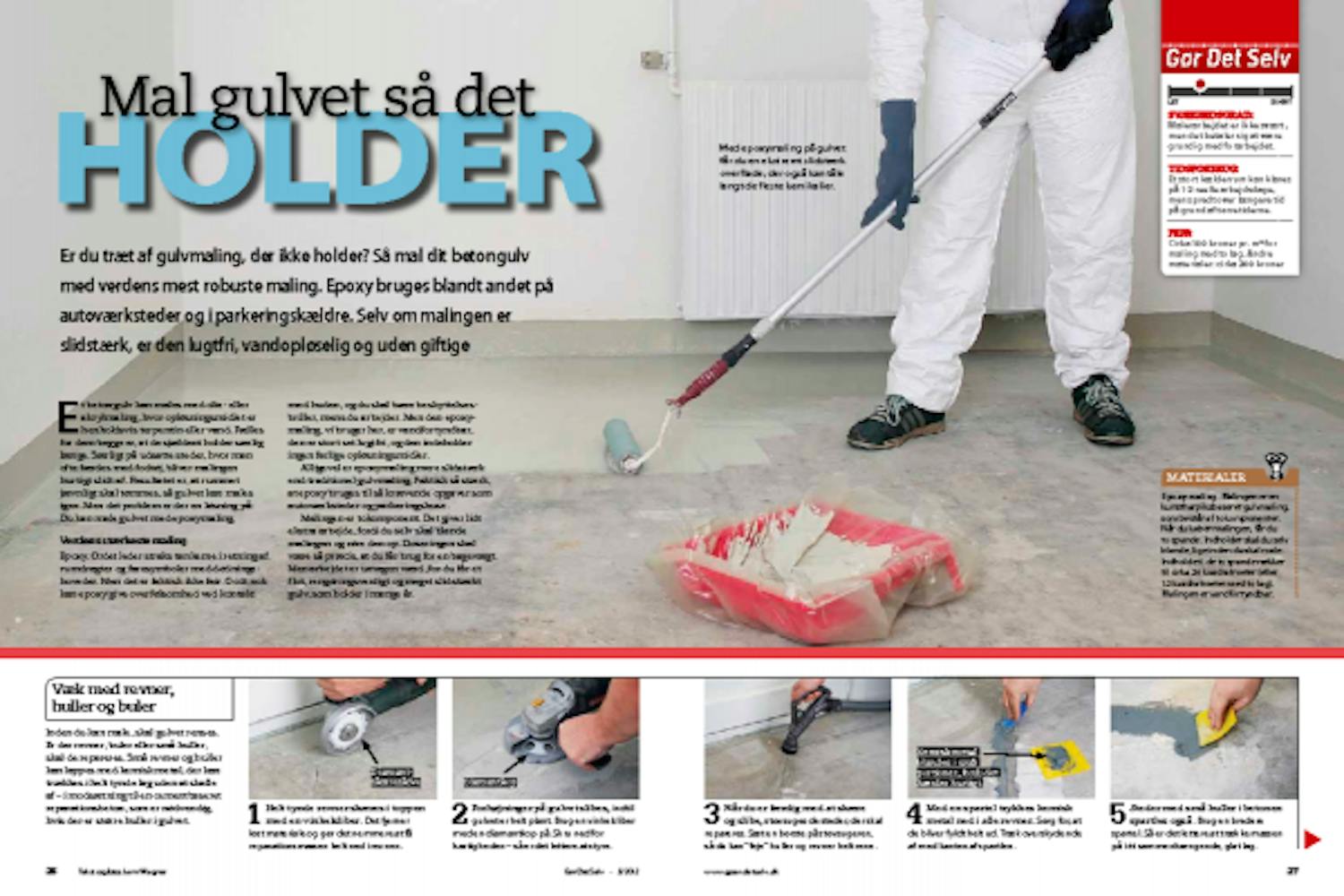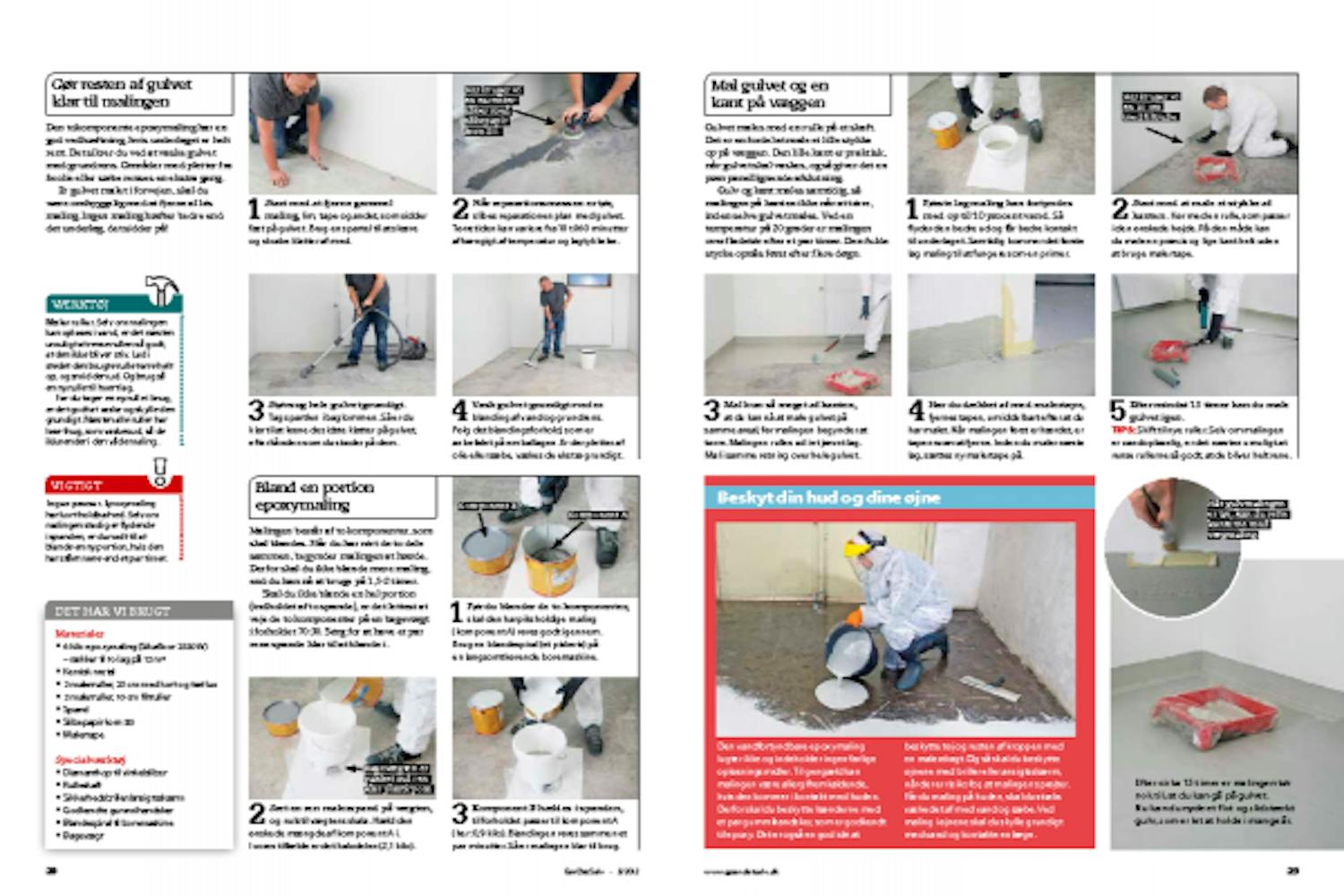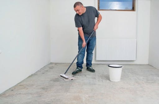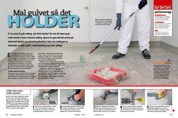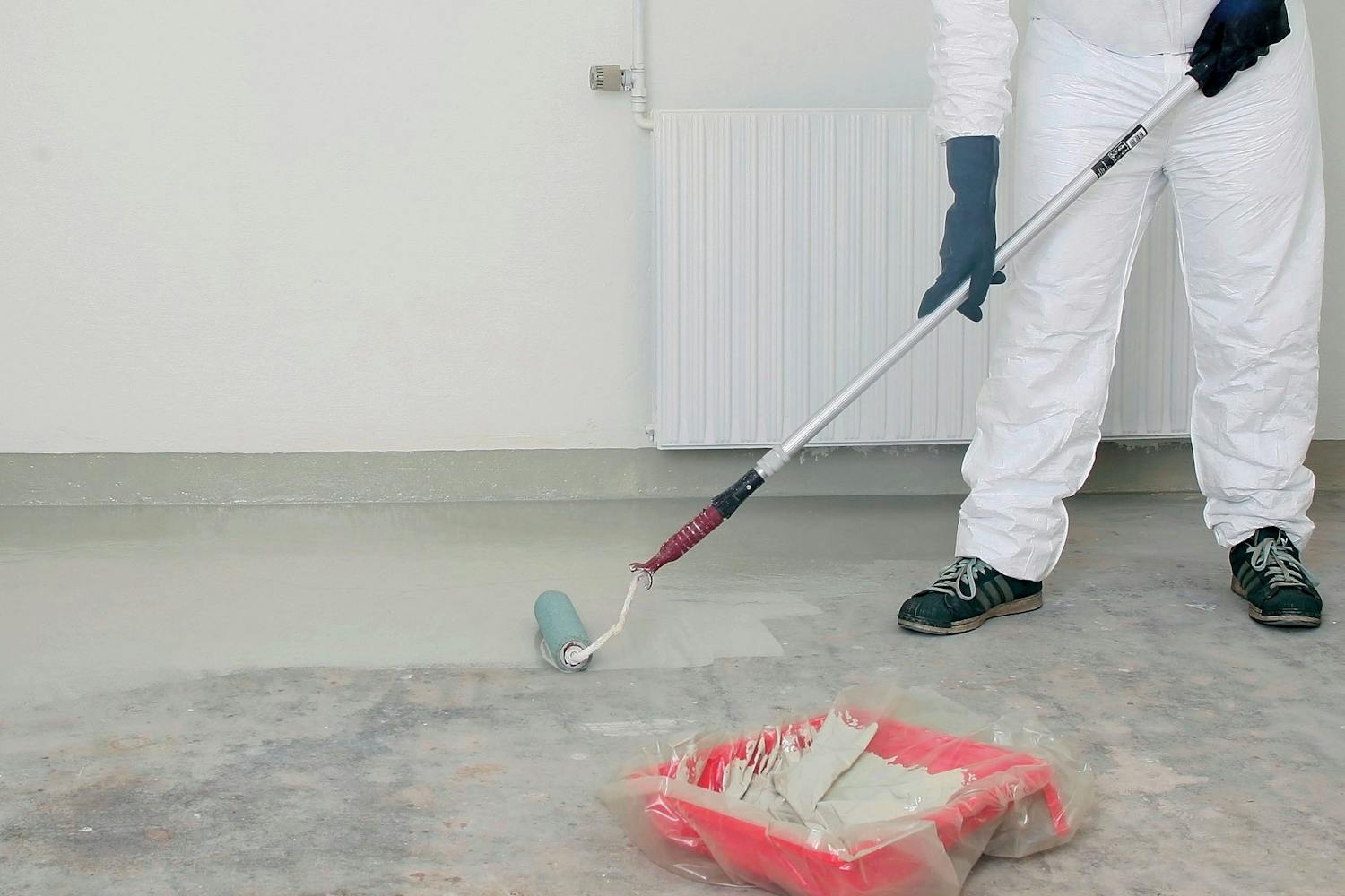 Den tokomponente epoxymaling har en god vedhæftning, hvis underlaget er helt rent. Det sikrer du ved at vaske gulvet med grundrens. Områder med pletter fra fx olie eller sæbe renses en ekstra gang.