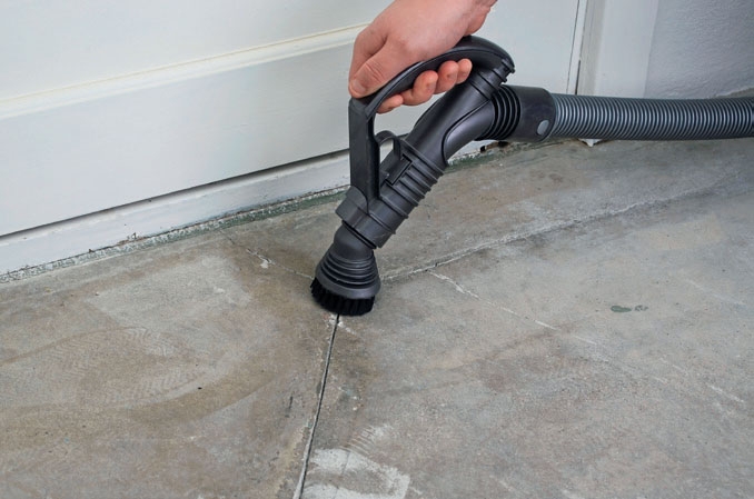 Når du er færdig med at skære og slibe, støvsuges de steder, der skal repareres. Sæt en børste på støvsugeren, så du kan ”feje” huller og revner helt rene.