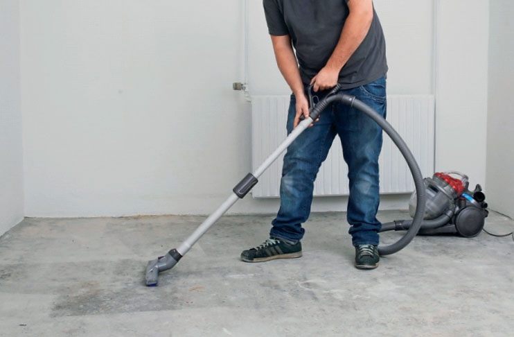 Støvsug hele gulvet grundigt. Tag spartlen i baglommen. Så er du klar til at løsne de sidste klatter på gulvet, efterhånden som du støder på dem.