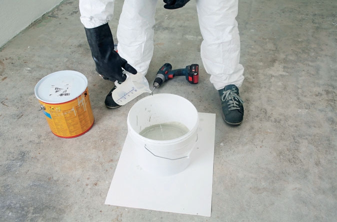 Skal du ikke blande en hel portion (indholdet af to spande), er det lettest at veje de to komponenter på en bagevægt i forholdet 70:30. Sørg for at have et par rene spande klar til at blande i.