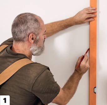 Streg feltet op. Brug et vaterpas til at lave helt lodrette og vandrette blyantsstreger med den afstand til gulv og loft, som du ønsker at have.