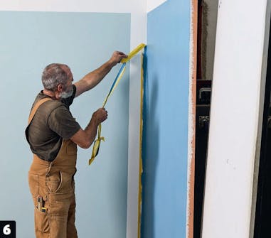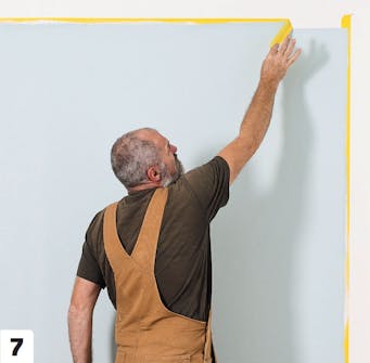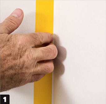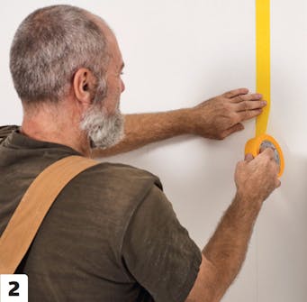 Sæt malertape på den tilstødende væg. Sørg for at sætte tapen i en lige linje, så du får en skarp kant mellem de to vægge.